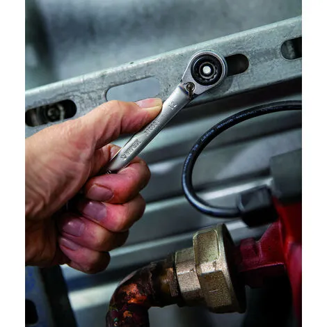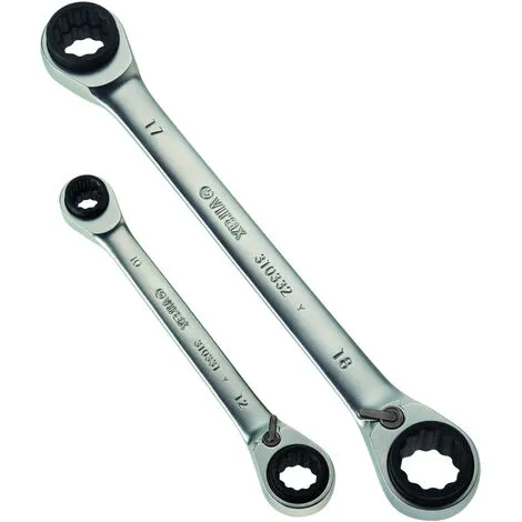 • Pratique : 2 clés = 8 dimensions : 8, 10, 12, 13, 16, 17, 18, 19 mm.• Confort : Levier d’inversion.• Rapidité : Clé à cliquet avec un angle de reprise de 5°.