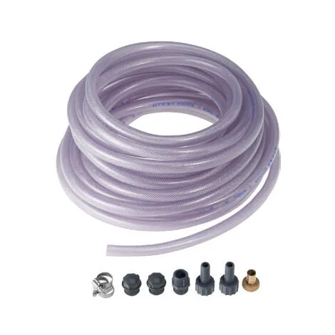 - Rallonge de 20 m de tuyau transparent (réf. 295022) pour se raccorder à l’arrivée d’eau, à l’égout …