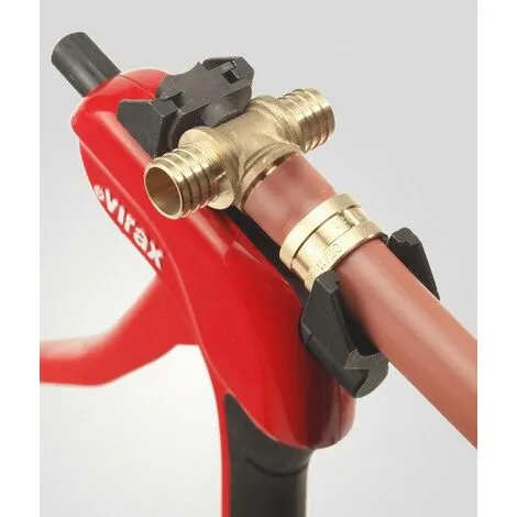 Permet de sertir les écrous libres Ø 3/8, 1/2, 3/4″ et les Tés et coudes Ø 12, 16 et 20 mm. (Fourche de sertissage en Ø 20 mm)